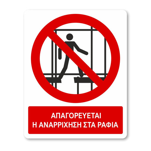 Δες ΠερισσότεραΠινακίδα Απαγόρευσης με Τίτλο Απαγορεύεται η Ανάβαση στα Ράφια A27 Διαθέσιμο σε 4 διαστάσεις: 160mm X 200mm, 200mm X 250mm, 260mm X 325mm, 320...