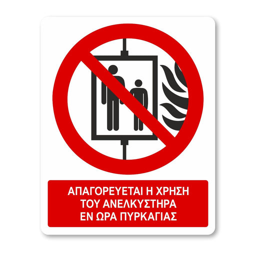 Δες ΠερισσότεραΠινακίδα Απαγόρευσης με Τίτλο Απαγορεύεται η Χρήση του Ανελκυστήρα εν Ώρα Πυρκαγιάς A42Διαθέσιμο σε 4 διαστάσεις: 160mm X 200mm, 200mm X 250mm...