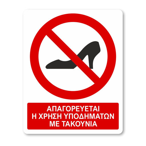 Δες ΠερισσότεραΠινακίδα Απαγόρευσης με Τίτλο Απαγορεύεται στο Χώρο η Χρήση Υποδημάτων με Τακούνι A36Διαθέσιμο σε 4 διαστάσεις: 160mm X 200mm, 200mm X 250mm, ...