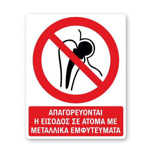 Δες ΠερισσότεραΠινακίδα Απαγόρευσης με Τίτλο Απαγορεύεται η Είσοδος σε Άτομα με Μεταλλικά Εμφυτεύματα A43Διαθέσιμο σε 4 διαστάσεις: 160mm X 200mm, 200mm X 25...