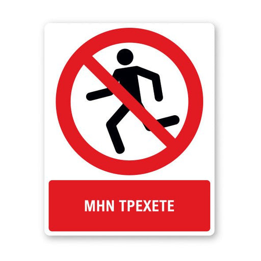 Δες ΠερισσότεραΠινακίδα Απαγόρευσης με Τίτλο Μην Τρέχετε A45Διαθέσιμο σε 4 διαστάσεις: 160mm X 200mm, 200mm X 250mm, 260mm X 325mm, 320mm X 400mm Σε 3 υλικά ...