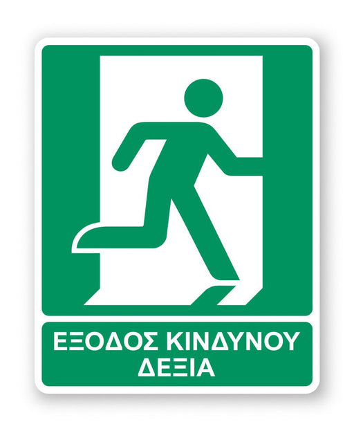 Δες ΠερισσότεραΠινακίδα Διάσωσης με Τίτλο Έξοδος Κινδύνου Δεξιά Ε18Διαθέσιμο σε 3 διαστάσεις: 160mm X 160mm, 200mm X 250mm, 260mm X 325mm, Σε 3 υλικά κατασκευής: ...