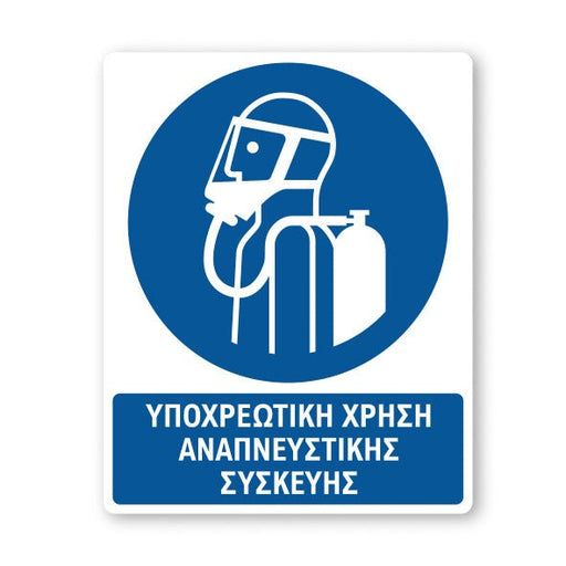 Σήμανση Υποχρέωσης με Τίτλο Υποχρεωτική Χρήση Αναπνευστικής Συσκευής Υ42Διαθέσιμο σε 4 διαστάσεις: 160mm X 200mm, 200mm X 250mm, 260mm X 325mm, 320...