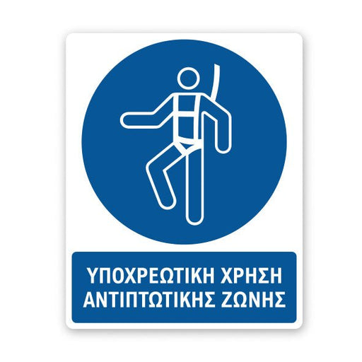 Σήμανση Υποχρέωσης με Τίτλο Υποχρεωτική Χρήση Αντιπτωτικής Ζώνης Υ09260mm X 325mm, 320mm X 400mm Σε 3 υλικά κατασκευής: - Αλουμίνιο- Πλαστικό PVC- ...