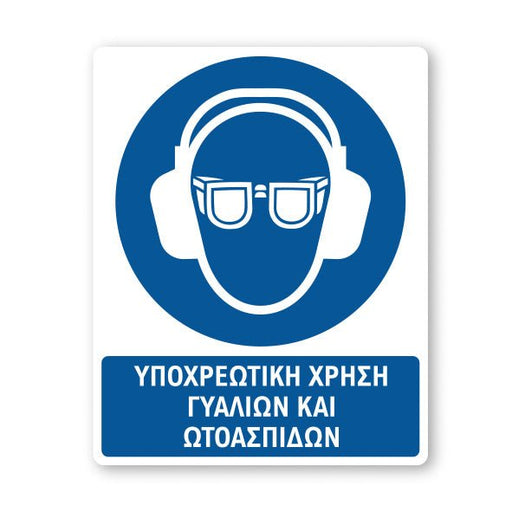 Σήμανση Υποχρέωσης με Τίτλο Υποχρεωτική Χρήση Γυαλιών και Ωτοασπίδων Υ34Διαθέσιμο σε 4 διαστάσεις: 160mm X 200mm, 200mm X 250mm, 260mm X 325mm, 320...