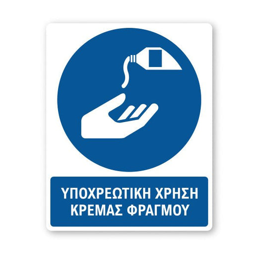 Σήμανση Υποχρέωσης με Τίτλο Υποχρεωτική Χρήση Κρέμας Φραγμού Υ39