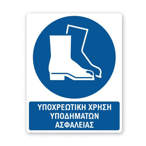 Σήμανση Υποχρέωσης με Τίτλο Υποχρεωτική Χρήση Υποδημάτων Υ05160mm X 200mm, 200mm X 250mm, 260mm X 325mm, 320mm X 400mm Σε 3 υλικά κατασκευής: - Αλο...