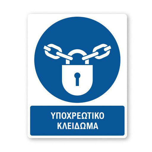 Σήμανση Υποχρέωσης με Τίτλο  Υποχρεωτικό Κλείδωμα Υ40Διαθέσιμο σε 4 διαστάσεις: 160mm X 200mm, 200mm X 250mm, 260mm X 325mm, 320mm X 400mm Σε 3 υλι...