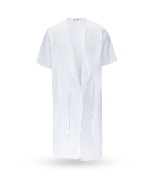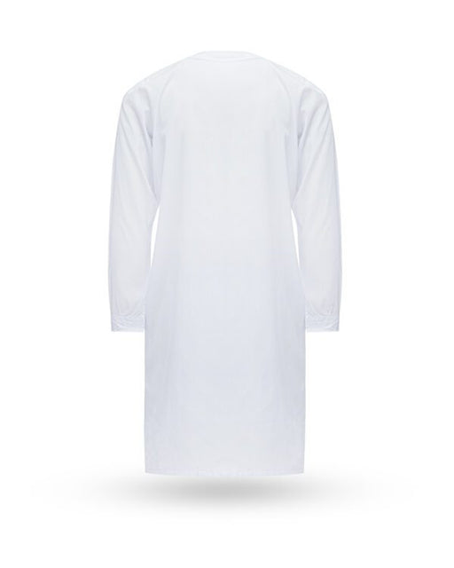 Disposable guest gown. Suitable for food. Non-woven polypropylene 35/m2. Closure with 4 buttons. Cut throat. Availability: 1 to 3 days