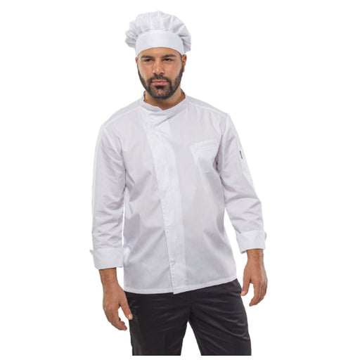 This chef jacket uses a lightweight fabric and offers a modern, slimmer silhouette with an ergonomic fit. This jacket features a concealed front do...