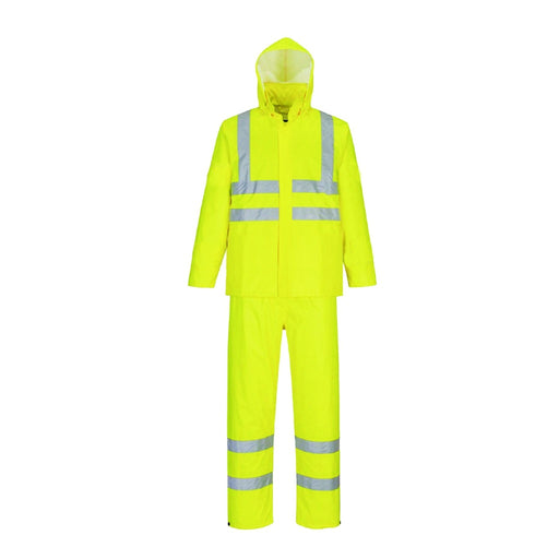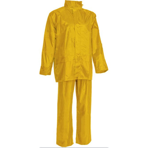 Waterproof jacket and pants set. Reflective Fluo yellow. Jacket with 2 pockets and permanent hood. Zipper closure with ear and eyelets. Inner ...