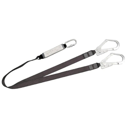 View full detailsSafety strap for tethering. With damper. Strap length 180 cm Includes 1 eyelet and 2 safety hooks. Scaffold hook opening 52 mm ...