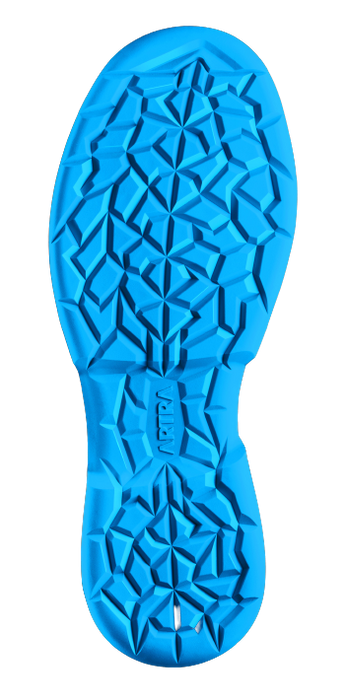 Αδιάβροχο μποτάκι εργασίας της εταιρείας Artra, το οποίο παρέχει προστασία δακτύλων κατά των χτυπημάτων και διαθέτει αντιολισθητική, αντιστατική και αντιδιατρητική σόλα βάσει του προτύπου ασφαλείας S3. Η αντιστατική σόλα αποτρέπει τη συσσώρευση του στατικού ηλεκτρισμού από το σώμα χωρίς να παρέχει επαρκή προστασία από ηλεκτροπληξία, ενώ η αντιδιατρητική σόλα προστατεύει το πέλμα από πάτημα κοφτερών και μυτερών αντικειμένων.